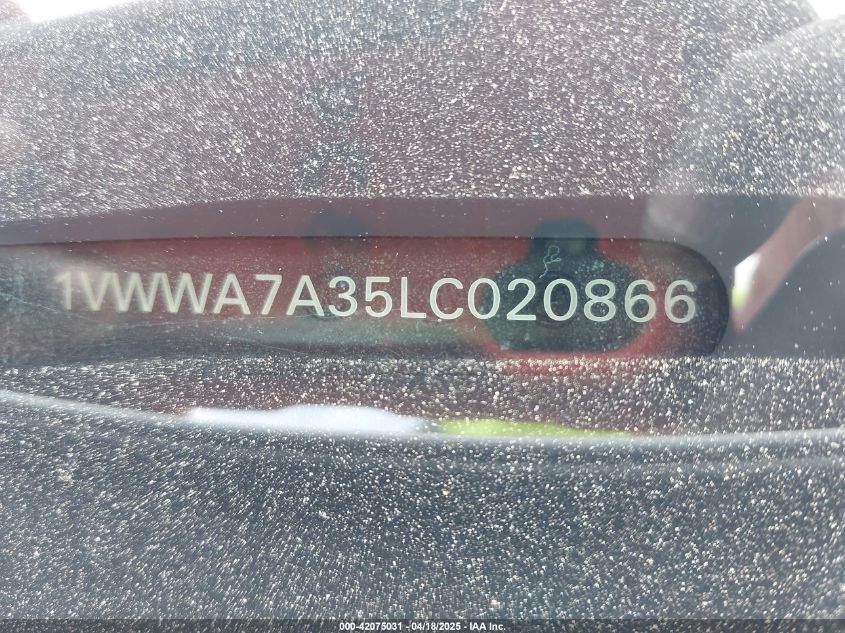 2020 VOLKSWAGEN PASSAT - 1VWWA7A35LC020866, колір - Білий, 2.0, Бензин, Передній привід із США