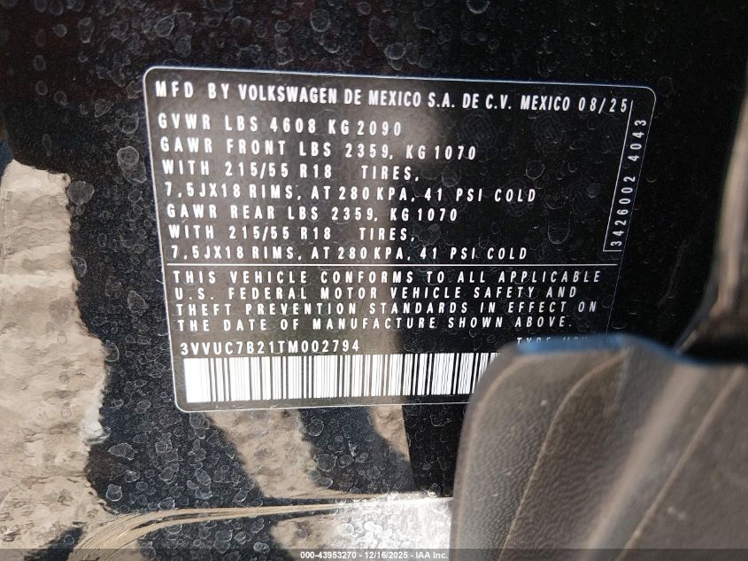 2026 VOLKSWAGEN TAOS - 3VVUC7B21TM002794, колір - Чорний, 1.5, Бензин, Повний привід із США