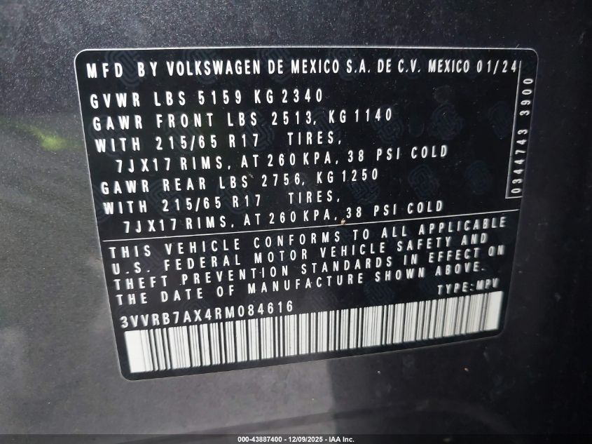 2024 VOLKSWAGEN TIGUAN - 3VVRB7AX4RM084616, колір - Сірий, 2.0, Бензин, Передній привід із США