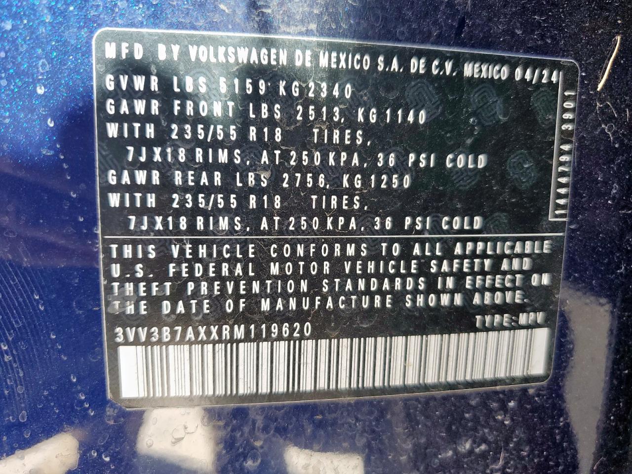 2024 VOLKSWAGEN TIGUAN - 3VV3B7AXXRM119620, колір - Синій, 2.0, Бензин, із США
