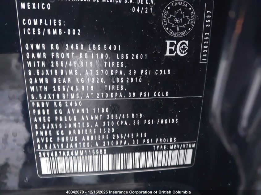 Колір ЧорнийЦиліндри 4Привід Повний привідVIN 3VV4B7AX4MM115950Стан СтаціонарноУшкодження ВандалізмДата аукціона 2025-12-17