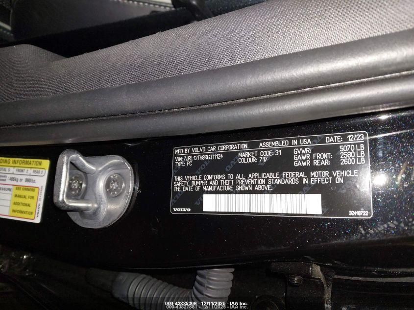2024 VOLVO S60 - 7JRL12TH8RG311124, колір - Чорний, 2.0, Бензин, Повний привід із США