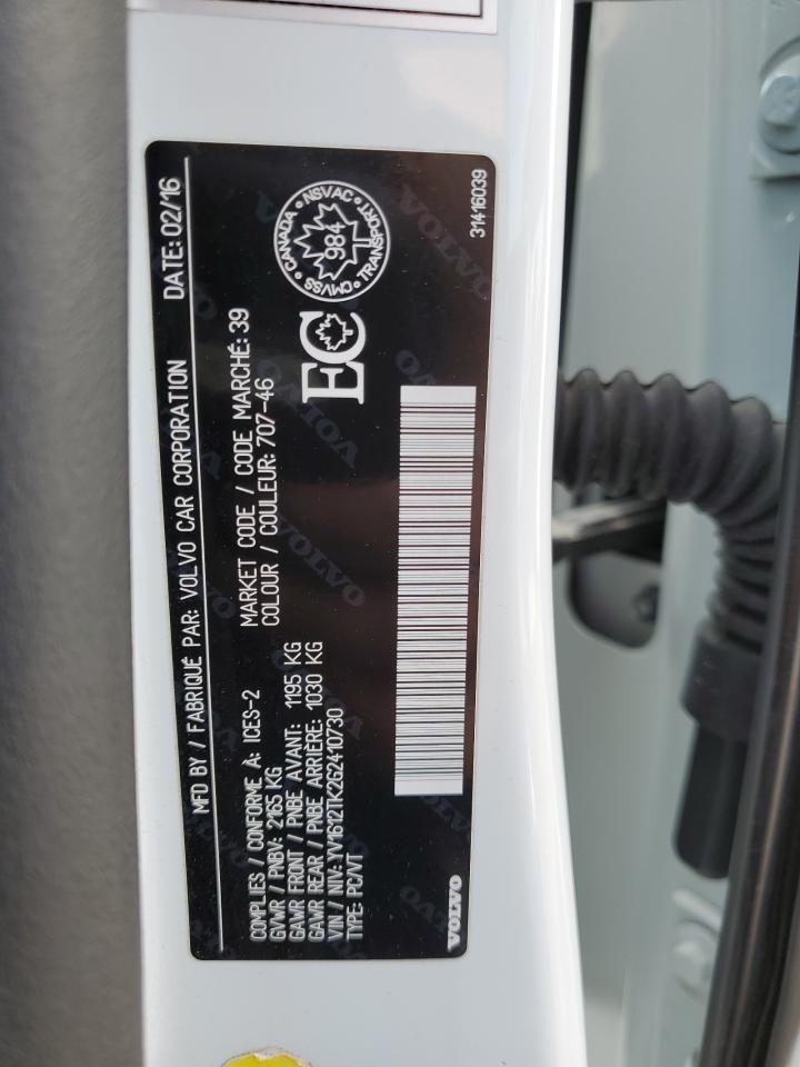 2016 VOLVO S60 - YV1612TK2G2410730, колір - Білий, 2.5, Бензин, Повний привід із США