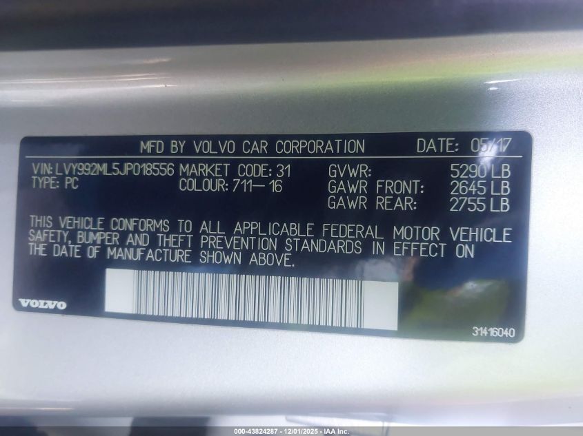 2018 VOLVO S90 - LVY992ML5JP018556, колір - Срібний, 2.0, Бензин, Повний привід із США